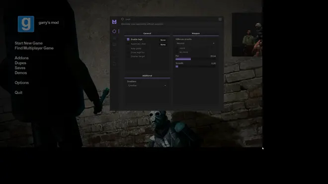 Простая модификация для Garry's Mod с базовым меню и небольшим количеством функций. Имеет вкладку LUAs для пользовательских настроек, легко настраивается.